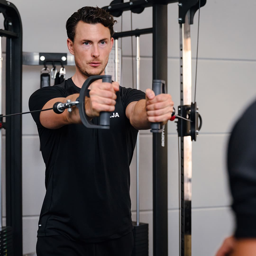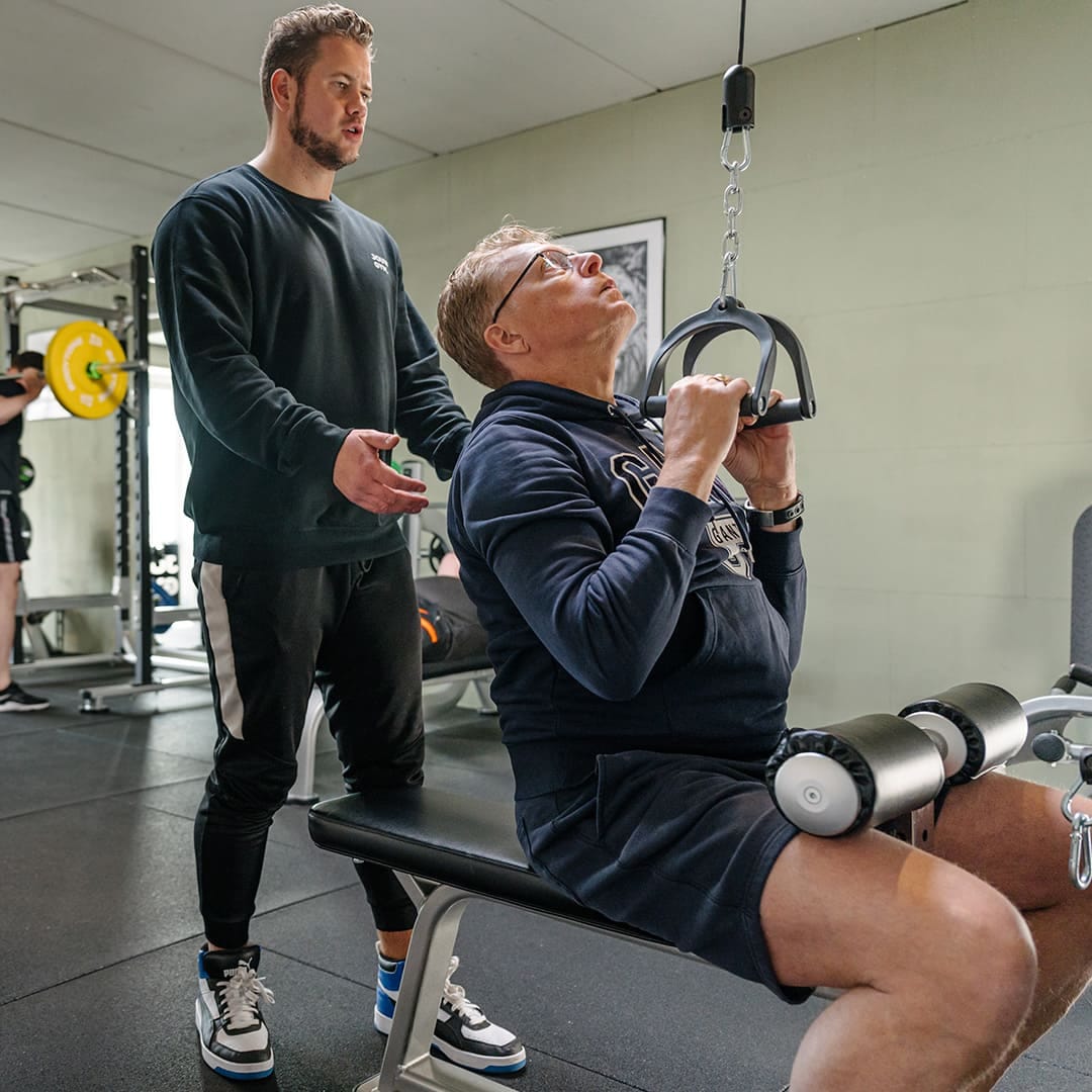 Je traint nooit zomaar wat. Een trainer begeleidt elke oefening en past alles aan jouw niveau aan. Zo voel je je veilig en zie je snel vooruitgang.